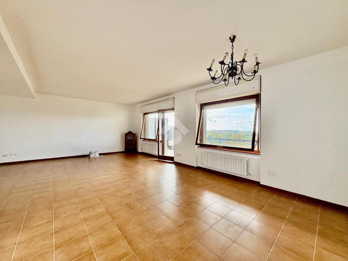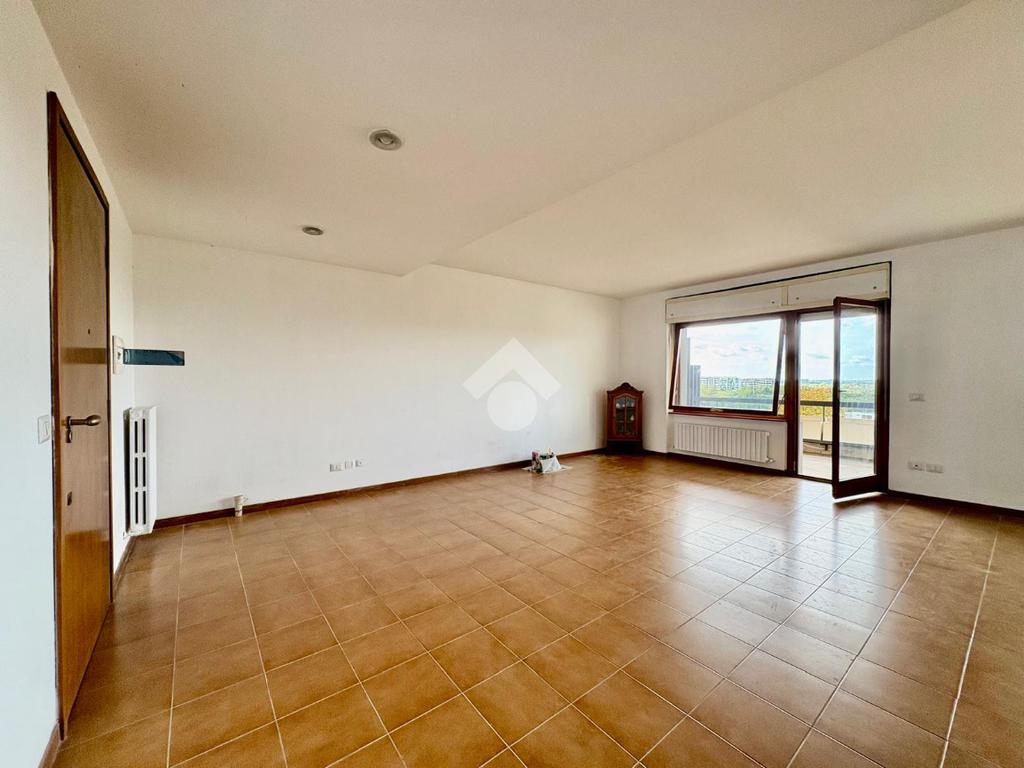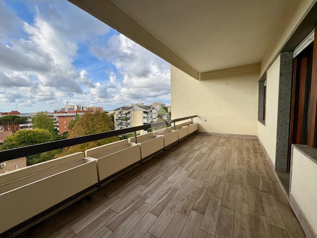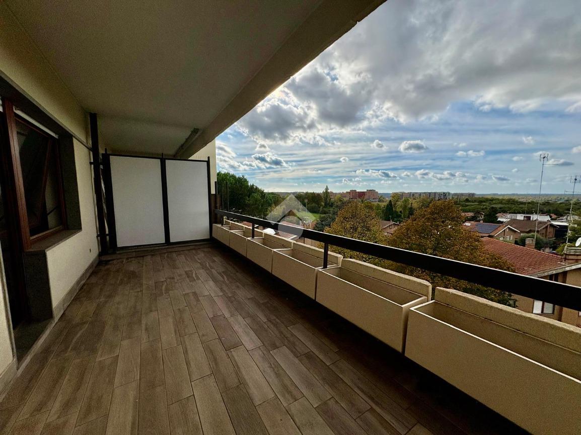 La zona giorno si apre su un grande balcone vivibile con affaccio libero e luminoso.