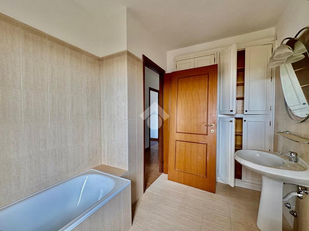 L’immobile è composto da un ampio salone doppio, una cucina abitabile con balcone di servizio e un corridoio che conduce alla zona notte, dove si trovano tre camere da letto e due bagni, entrambi finestrati, uno con doccia e l’altro con vasca.