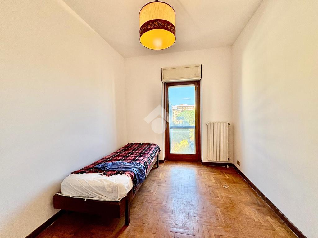 L’immobile è internamente composto da: ampio ingresso, salone doppio, cucina abitabile con balcone di servizio, corridoio, tre camere da letto, doppi servizi entrambi finestrati, uno con doccia e l’altro con vasca.