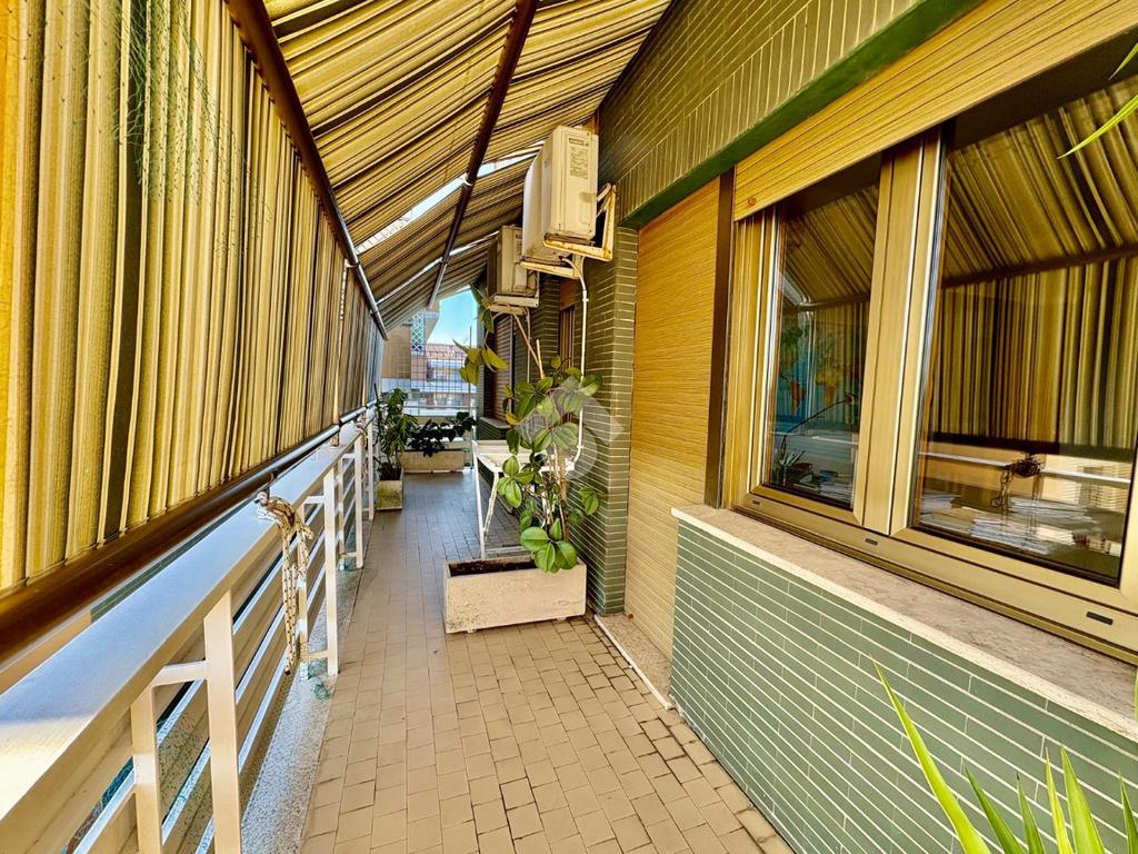 L’appartamento è dotato di infissi in PVC/doppio vetro rivestiti in legno, parquet, condizionatori caldo/freddo e due comodi soppalchi nel disimpegno.