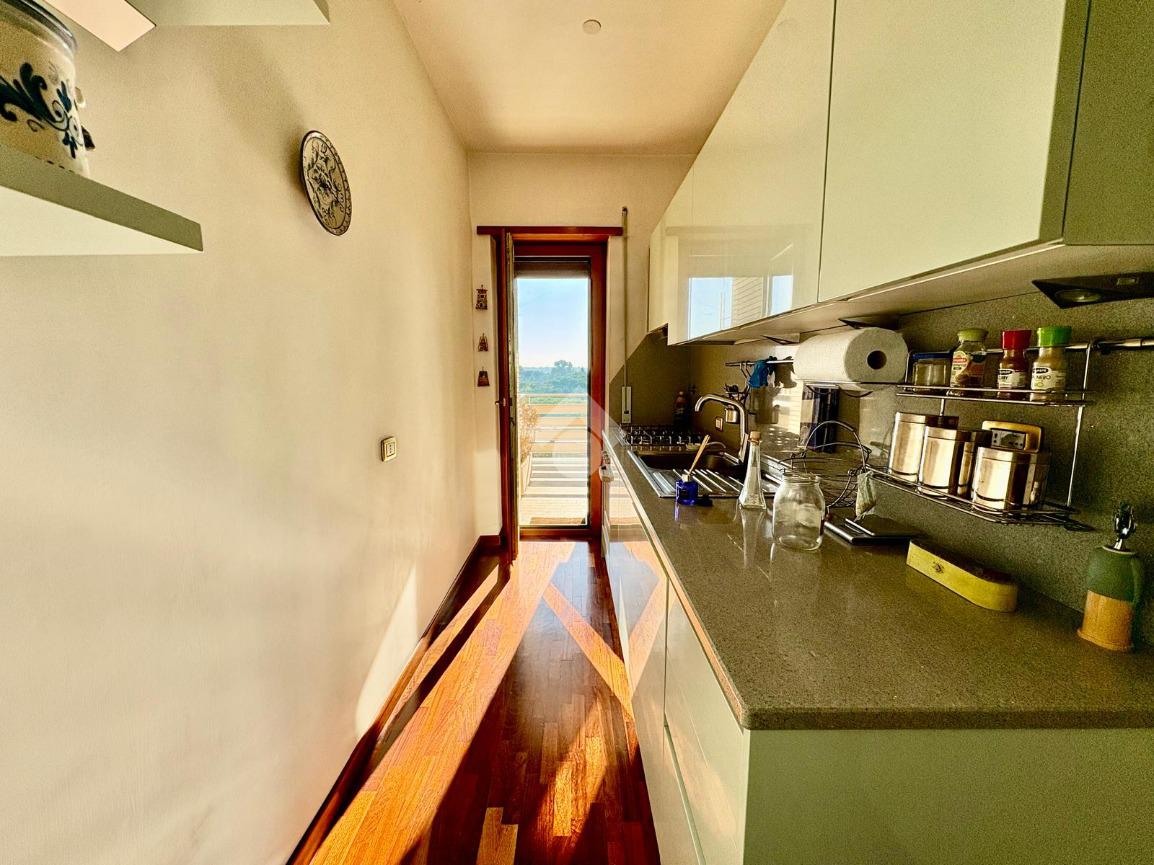 L'agenzia immobiliare Tecnocasa Mostacciano propone in vendita un appartamento trilocale di ampia metratura, posto al quinto piano di una palazzina in cortina di cinque oltre mansarde, recentemente ristrutturata.