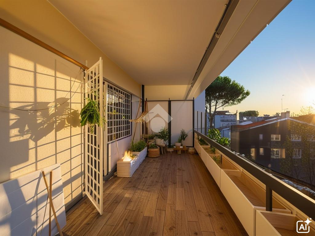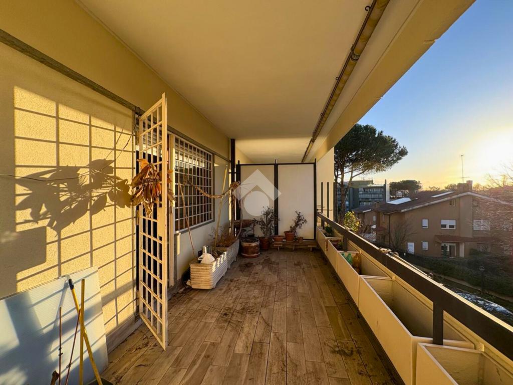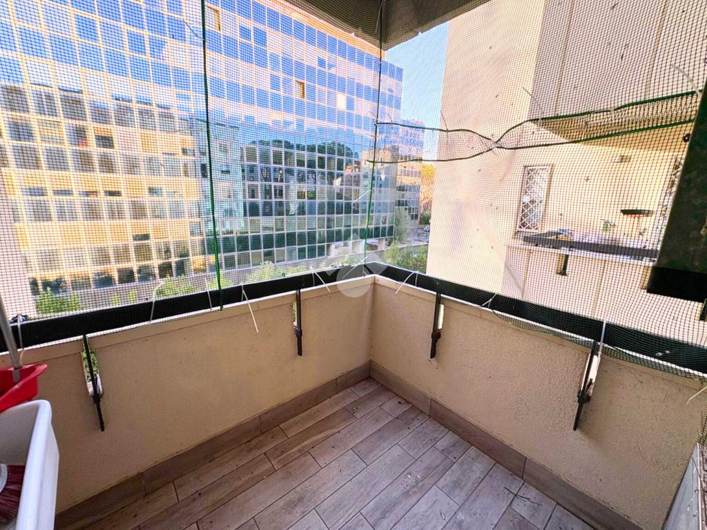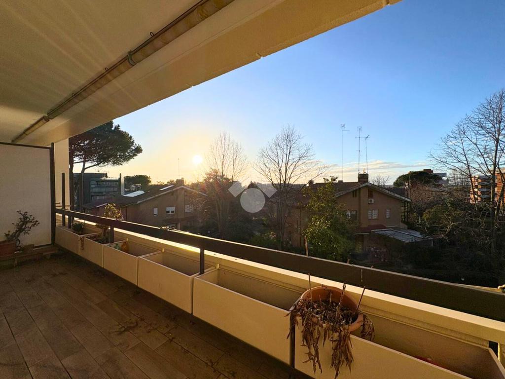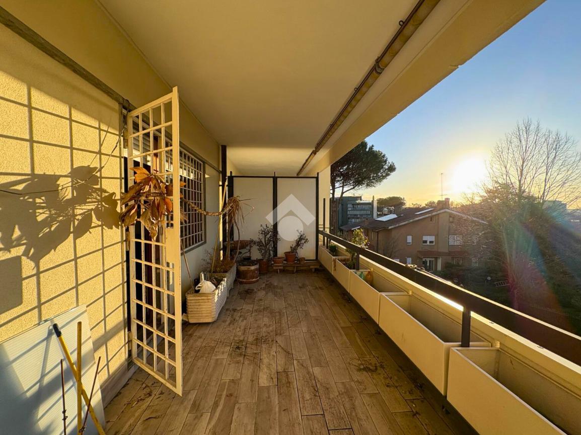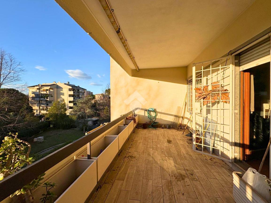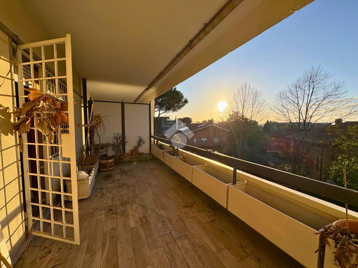 La zona giorno si apre su un grande balcone vivibile e luminoso, con favorevole esposizione a Ovest.