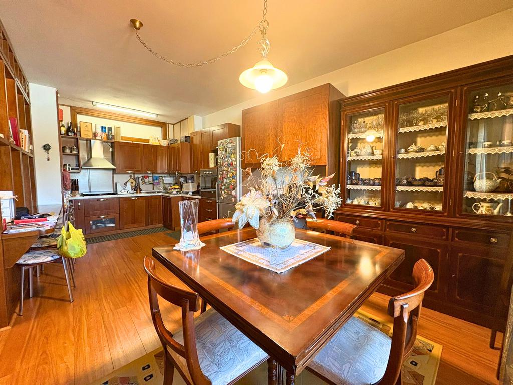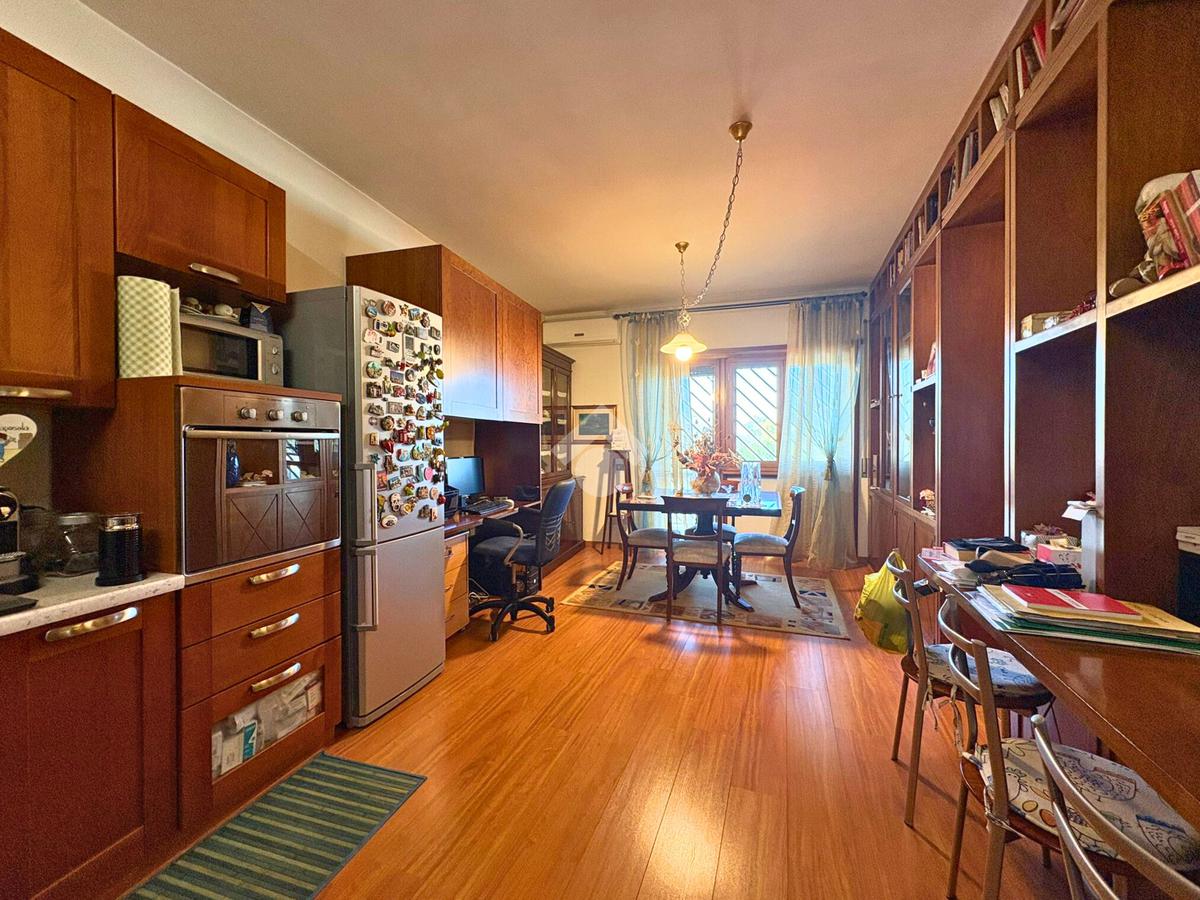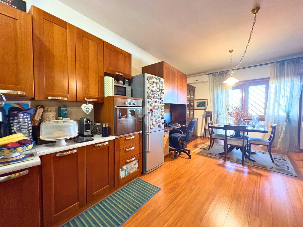 L’ingresso dell’abitazione si trova al piano primo e introduce nella zona living con open space che distingue il salone dalla cucina con sala da pranzo.